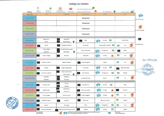 Menus de mars 2026