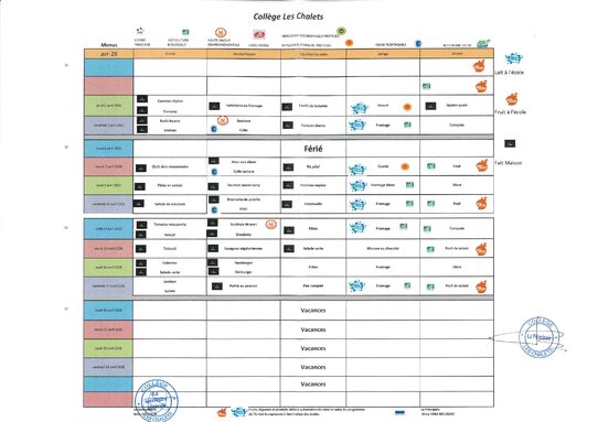 Menus d'avril 2026