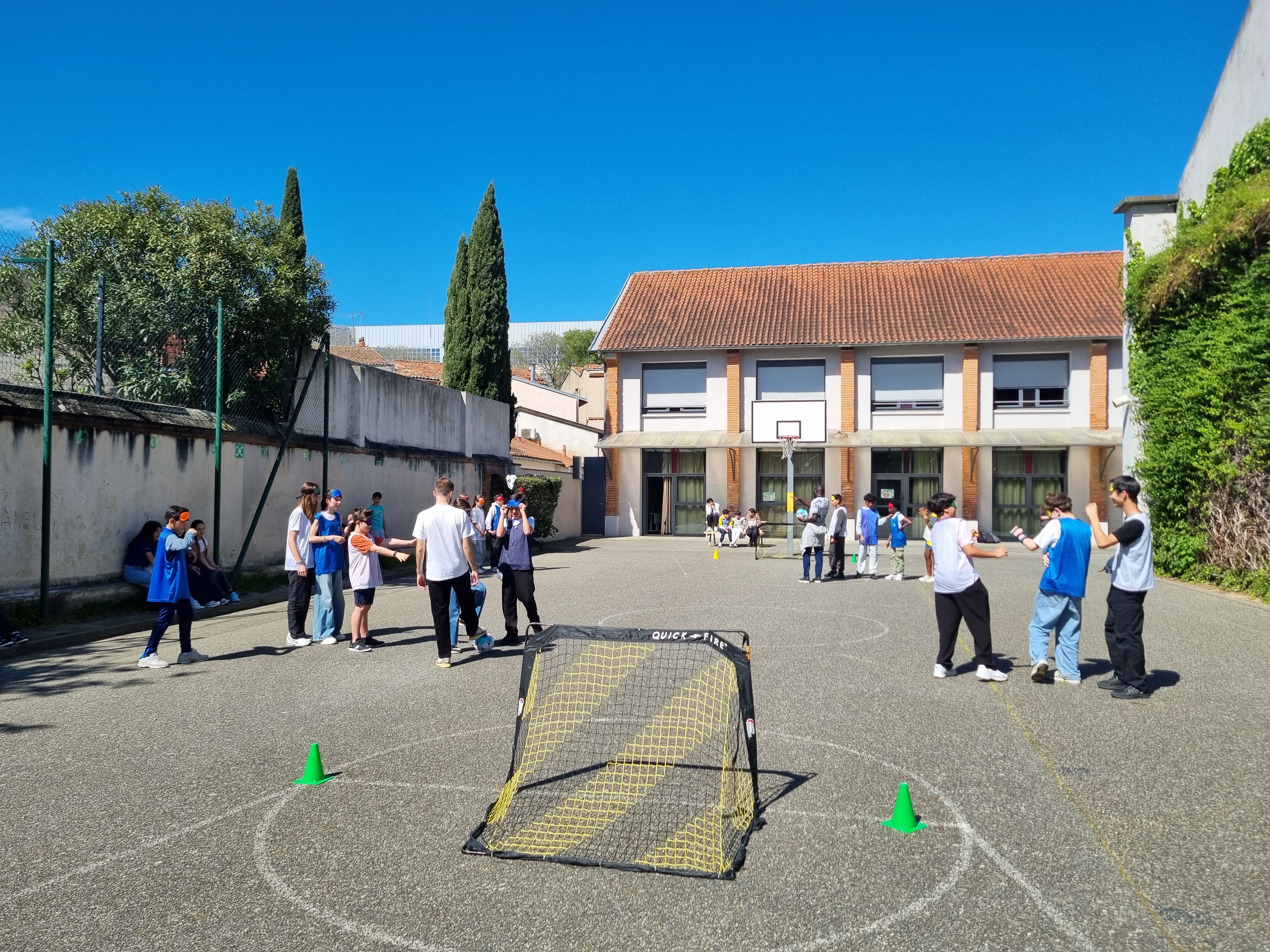 Jeudi 9 avril, grâce à Farouk élève de 4BEE, Lucas (entraîneur au TFC) et Babacar (joueur au TFC et équipe de France) sont venus faire une initiation au Cécifoot pour sensibiliser les élèves à l'accessibilité au sport des élèves en situation de handicap.